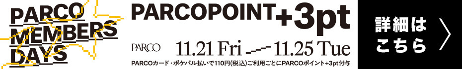 ・【PARCOメンバーズ限定】:PARCOカードまたはポケパル払いでお支払いいただいた場合に記載の内容が適応となります。