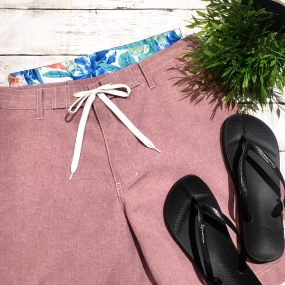 シンプルな無地のサーフパンツ。涼しげでタウン用にも活用できるお洒落パンツです。