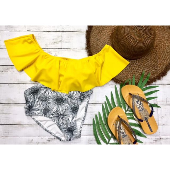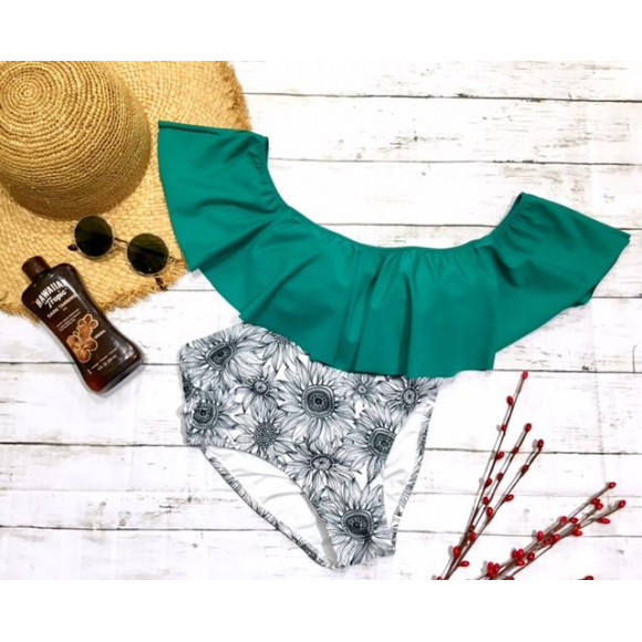 福岡・天神リゾート 水着ショップ PEAK&PINE福岡パルコ店☆ 無地×花柄のお洒落オフショルダービキニ♪