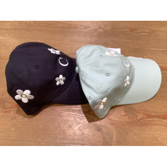 今回のニューエラは、CALNAMUR(カルナムール)とのコラボレーションモデルで、フロントに施されたデイジーの刺繍がとてもキュート。このニューエラは、甘くなりすぎないネイビーカラーとミントグリーンで、カジュアルにもフェミニンにも合わせやすいのが魅力です。