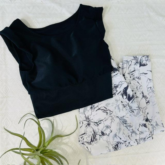 同シリーズのレギンスと合わせた無地コーデはもちろん、