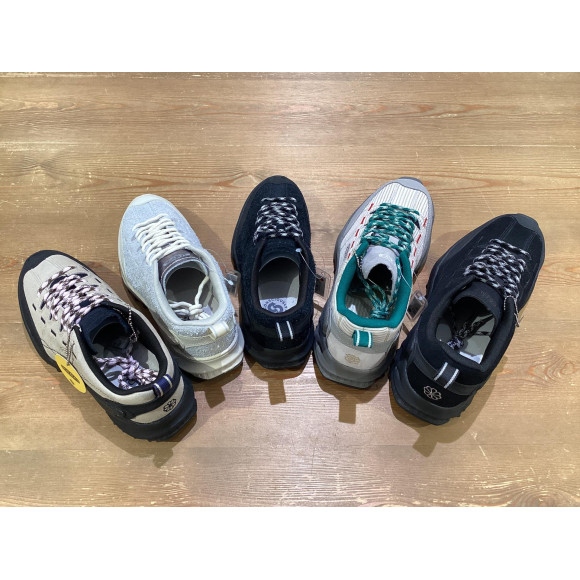 環境に配慮したリサイクル素材を使用しながら、フィット感とグリップ性を向上させたこの注目モデルは、タウンユースからライトトレッキングまで幅広く活躍する一足です。