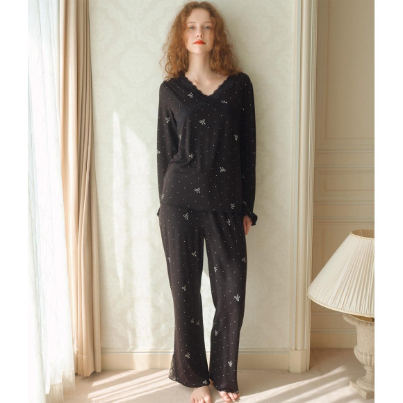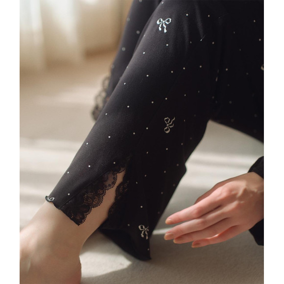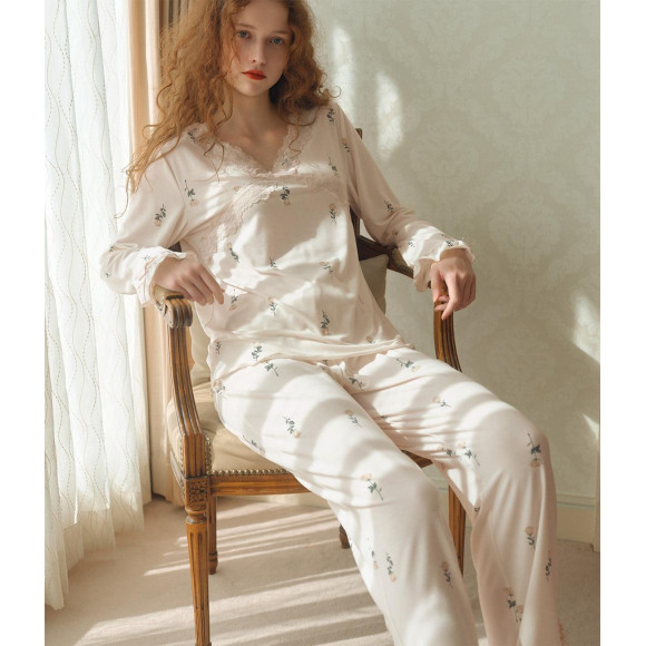 レーストリムでフェミニンさを上乗せ。品良くらくちんなカットソーパジャマ。