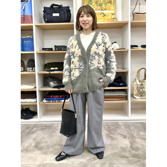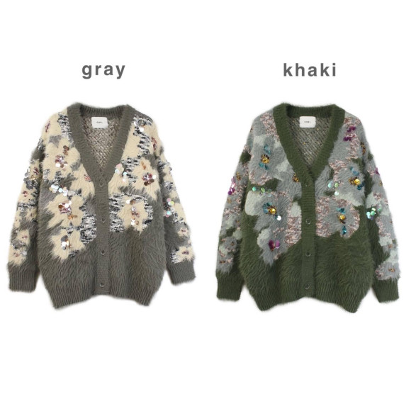 ●花柄ビジューシャギーカーディガン
