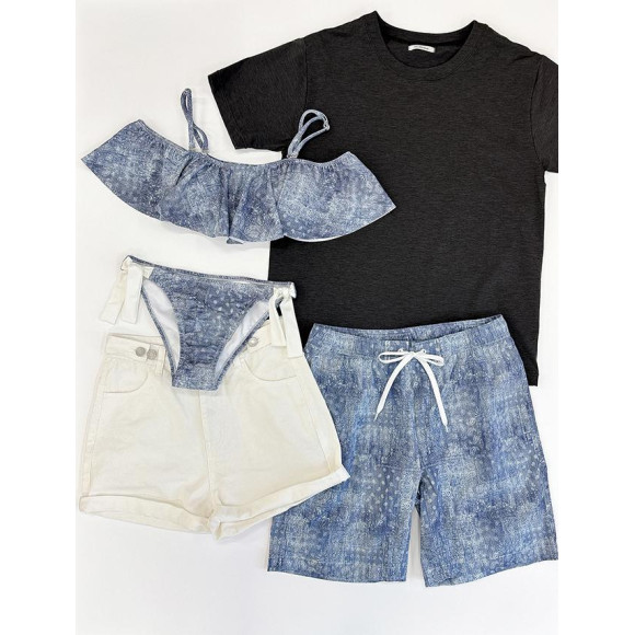 爽やかなデニムプリント水着♡カップルコーデもおススメ♡【福岡水着 天神水着 リゾート水着 ALBOVE ヨガ ジム PEAK & PINE メンズ水着】