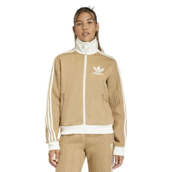 ニットの質感とケーブル編みの袖が、上質なルックと快適な着心地を演出。