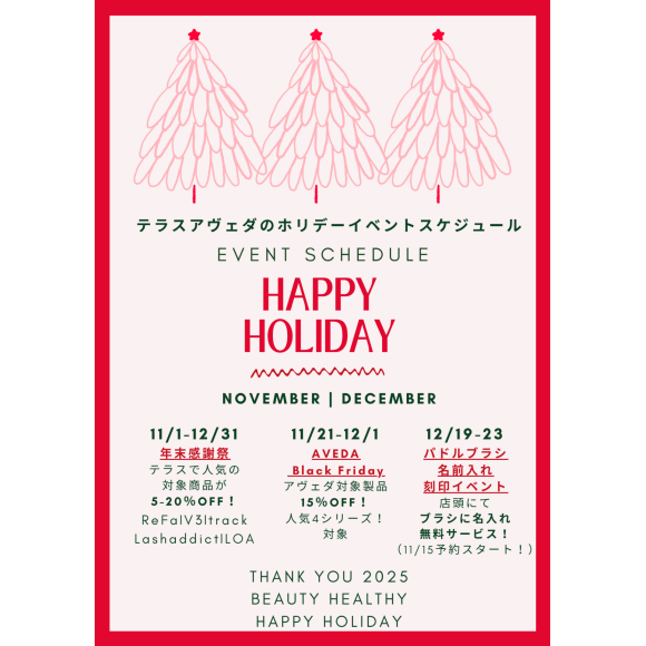 Terrace AVEDA 福岡パルコ店です。1年の「ありがとう」の想いを込めて今年も開催いたします☆彡