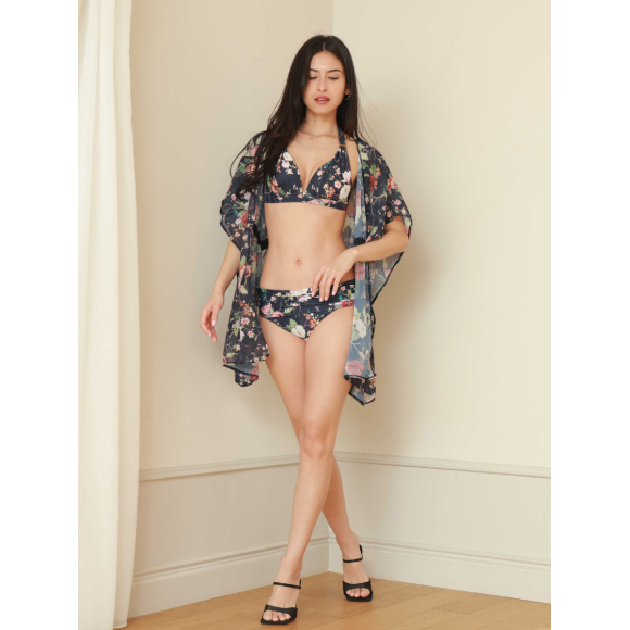ネイビーベースでシックながらも華やかなボタニカルプリント