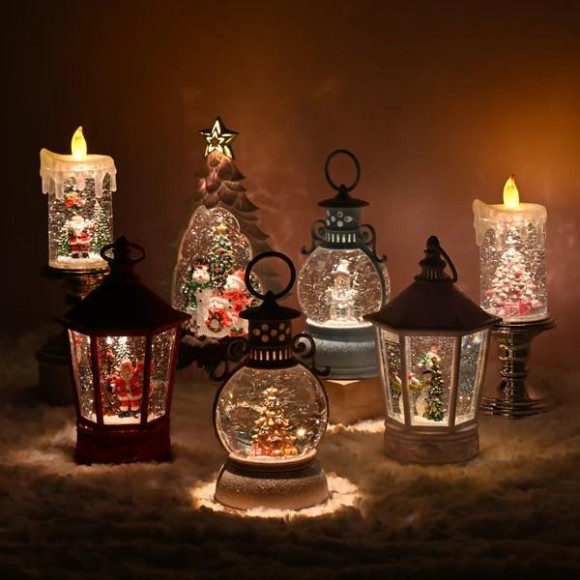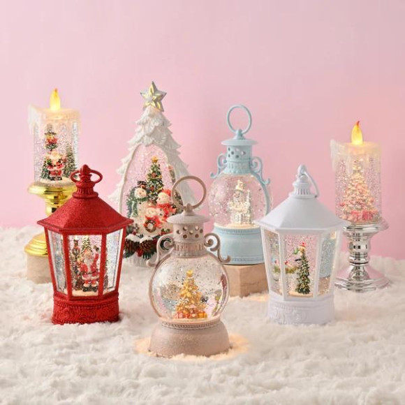 ランタンやキャンドル、ツリーなど様々な形のスノードームをラインナップ。