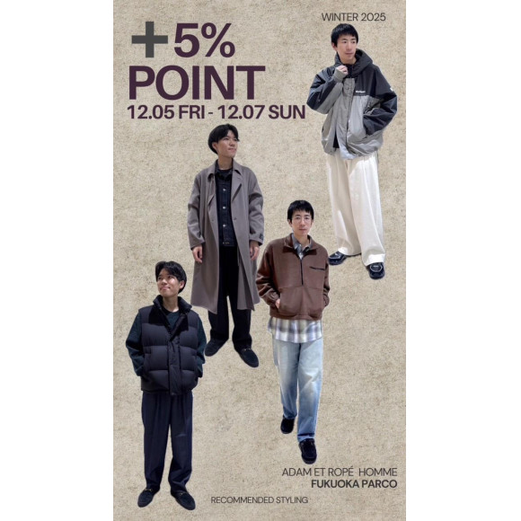 期間中、お買い上げの金額・ランクに合わせて、JUNGLOBAL IDのポイントを+5%アップで還元! ▼開催期間 12/5(金)〜12/7(日) 是非この機会にご来店くださいませ!