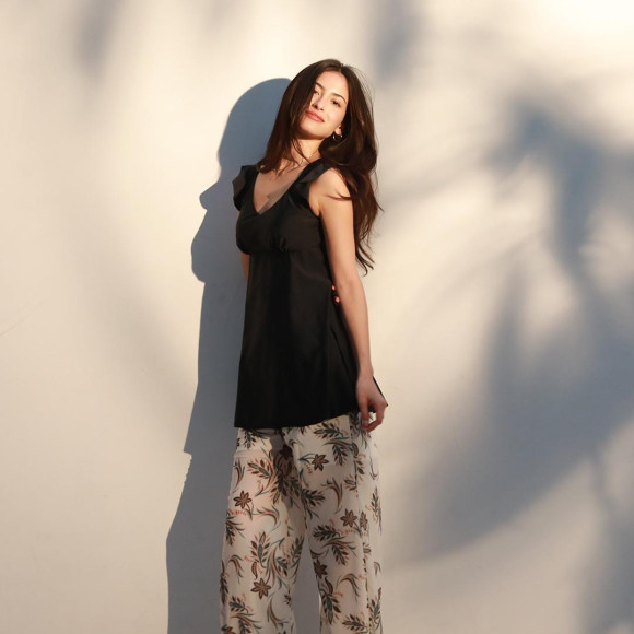 リゾートアイテムともコーデが組みやすい、大人シンプルなキャミソールビキニ♡
