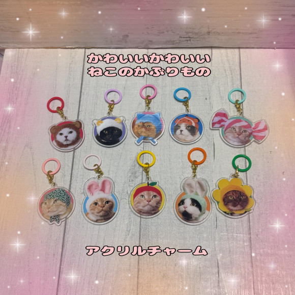 「ねこのかぶりもの」シリーズのかわいい写真がアクリルチャームになりました!