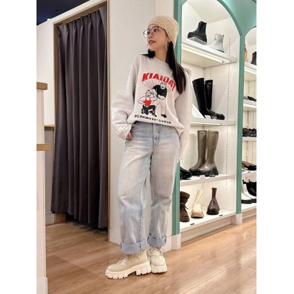 ボリュームソール編み上げニットブーツ/51406 ボリューム感があるデザインですが、 履き心地抜群のショートブーツ ニットタイプで着脱もしやすく、履き当たりも 柔らかいので長時間着用時も安心 人と被りたくない方にオススメ ●普段 着用するサイズ:L ●今回 着用したサイズ:L ●サイズ選びのポイント:作りはゆったりめなので、甲や幅が細い方は中敷き入れての着用をオススメします。
