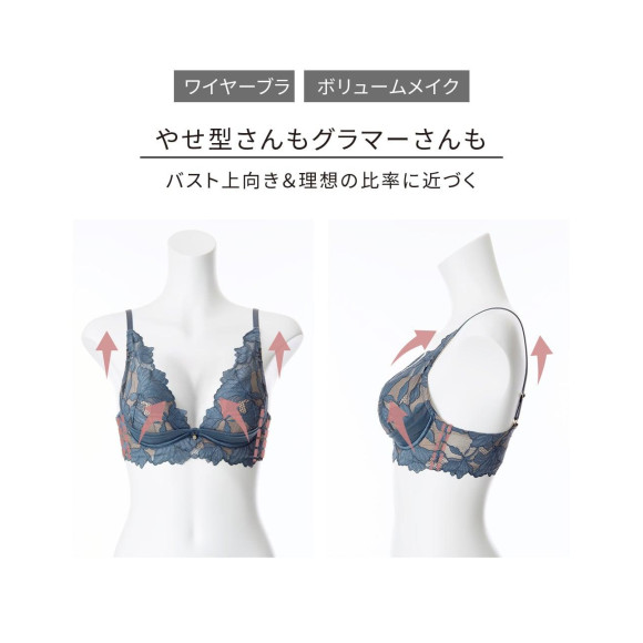 ・サイズに応じて厚みを変えたカップで最適なボリュームをプラスし、ぷるんと柔らかな形良いバストに。