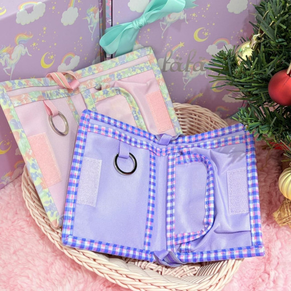 首から下げれる紐付きに開けやすいマジックテープで小さなお子様のお財布デビューにもおすすめ☆