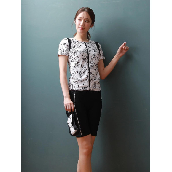 二の腕をカバーしてくれる半袖フィットネス水着☆【福岡パルコ 大人水着 九州水着 天神水着 体型カバー水着 フィットネス水着】