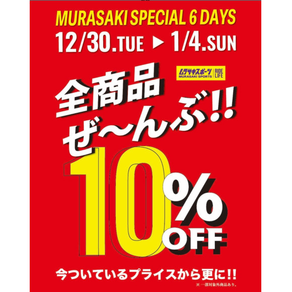 【本日最終日】全品10%OFF!ムラスポ最大の6日間が間もなく終了!