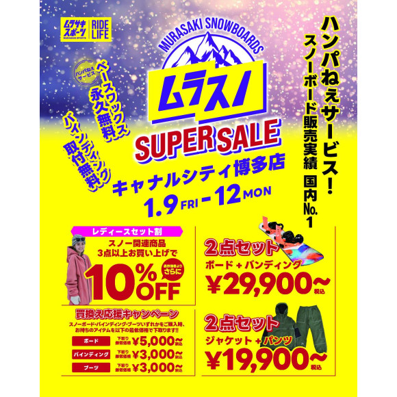 【ムラスノSUPER SALE】1/9〜12開催!キャナルシティ博多店で今季2度目のセール開催!