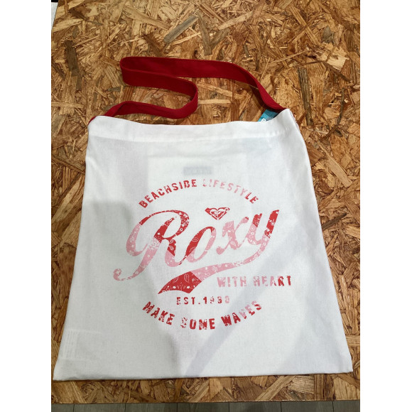 Featuring the messages "BEACHSIDE LIFESTYLE" and "MAKE SOME WAVES" along with the classic ROXY heart logo. The vibrant red shoulder straps serve as a stylish accent, making it a standout piece for any simple outfit.
