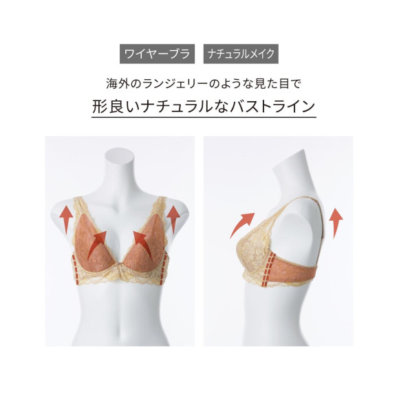 やさしい着け心地でナチュラルにバストメイク。インポート風総レースのフルカップ。