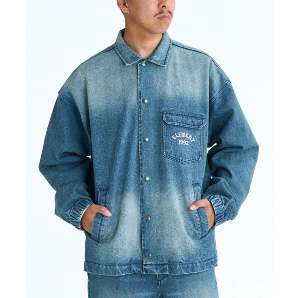 ELEMENT JEAN CARTER JACKETは、タフなデニム素材を使用しながらも、コーチジャケットのような軽快なシルエットが特徴です。