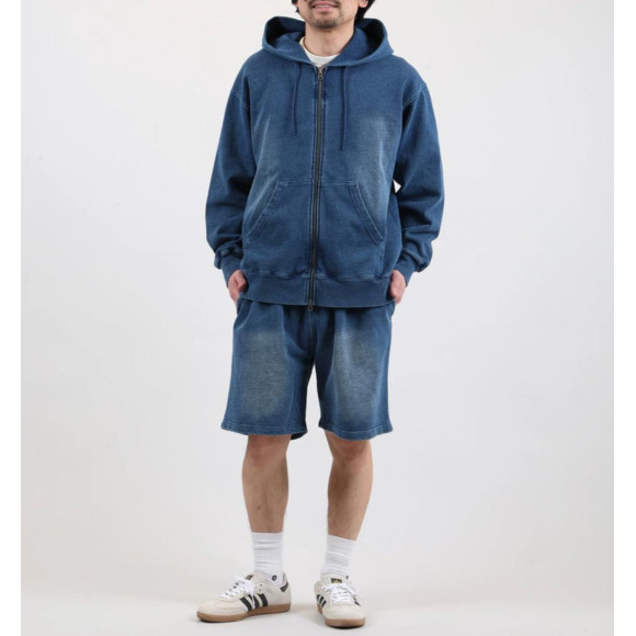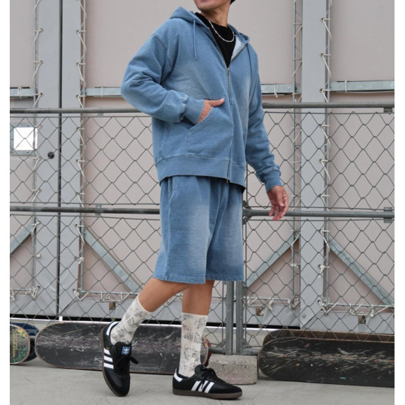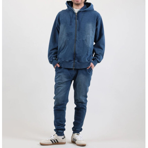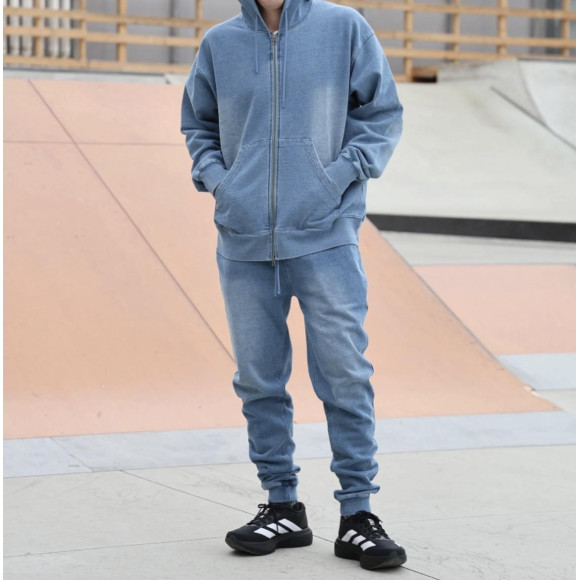 DEAR LAUREL カットデニムジップパーカー&パンツは、見た目は本格的なウォッシュ加工デニム、着心地は極上の裏毛スウェットという、まさに「いいとこ取り」なアイテムです。