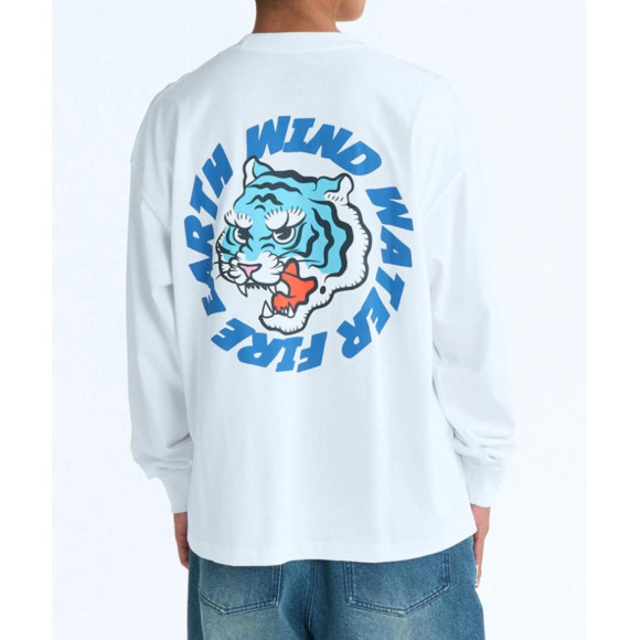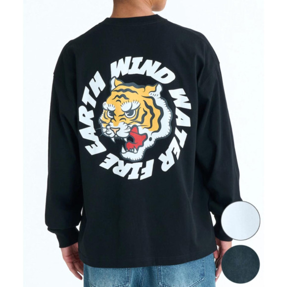 • バックプリント: ポップかつ迫力のあるタッチで描かれた虎と、ELEMENTのブランドコンセプトである「EARTH, WIND, WATER, FIRE」の文字が円状にデザインされています。