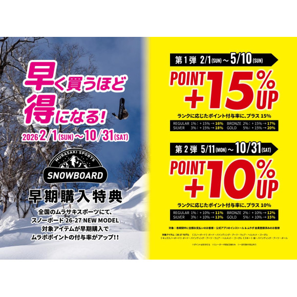 まだ今シーズン真っ只中ではありますが、早くも来シーズンの準備がお得にできる**「26-27 NEW MODEL スノーボード早期購入特典」**が本日よりスタートいたしました!