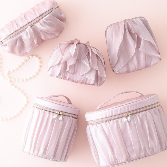 他には、コンパクトで持ち運びしやすいSサイズ、自立して中身の整理をしやすいスタンド型、大容量でコスメをたっぷり収納できるワイヤーポーチやバニティタイプをラインナップ。