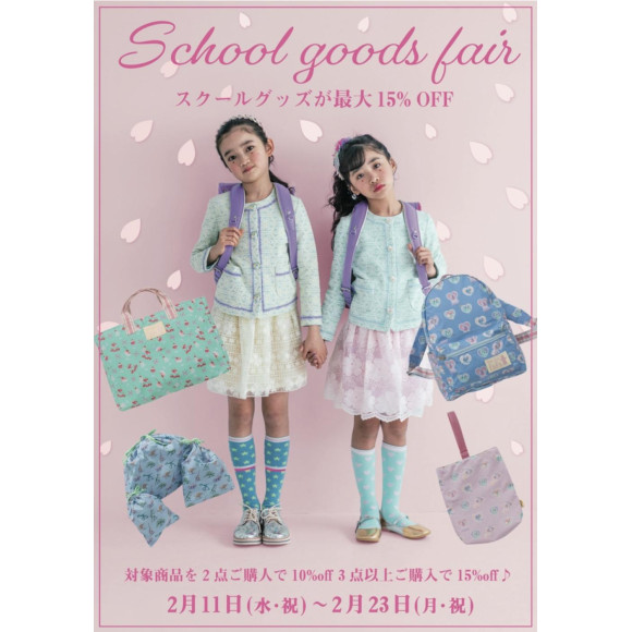 ただ今フェフェで開催中のスクールグッズフェア♪