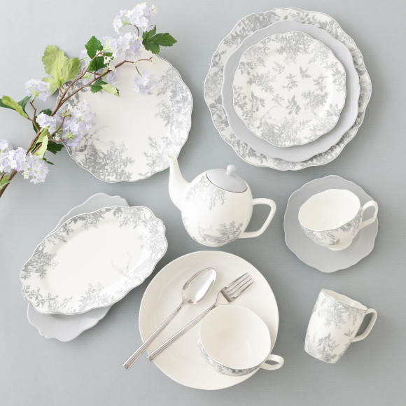 草花の間から動物が覗き込むデザインが微笑ましく、食卓をエレガントにしてくれます。