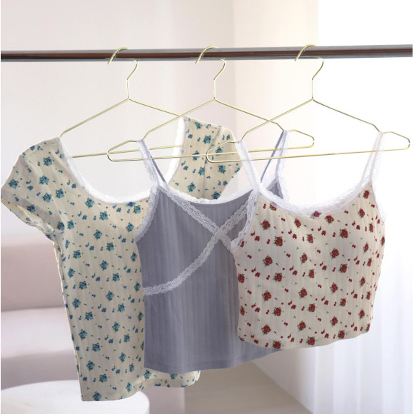 トップスとしても着たくなる小花柄プリントや細レースでフェミニンなデザインとなっております♩