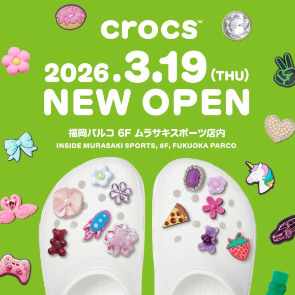 ムラサキスポーツ福岡パルコ店内に、世界中で愛されるクロックス(crocs)の特設ショップがいよいよニューオープン!