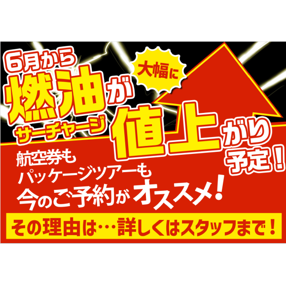 燃油サーチャージ 6月に一気に値上がりいたします!