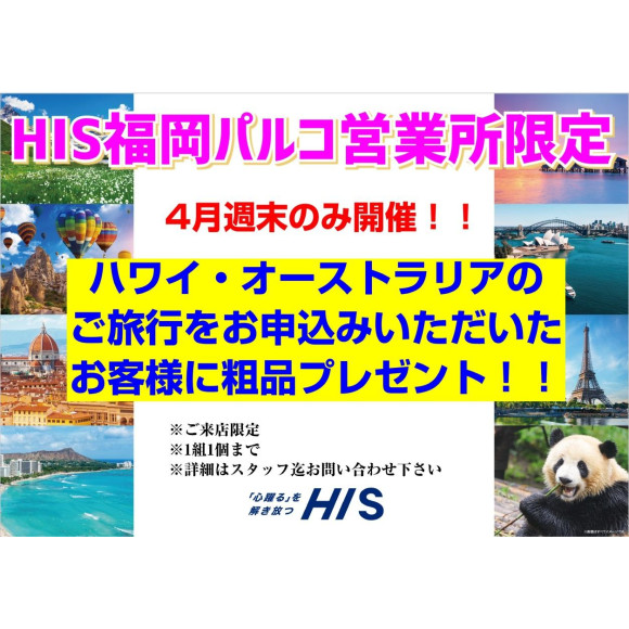 HIS 福岡パルコ営業所限定 4月週末キャンペーン