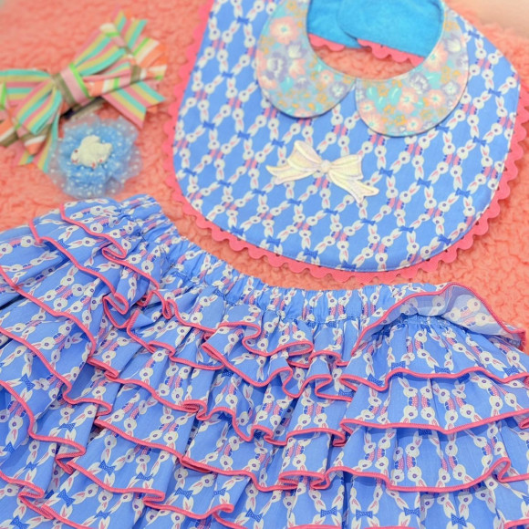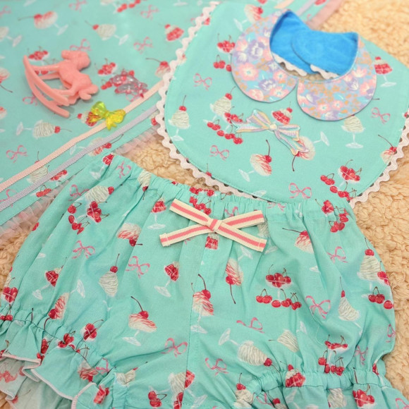 おしゃれな丸襟ビブにふりふりブルマで