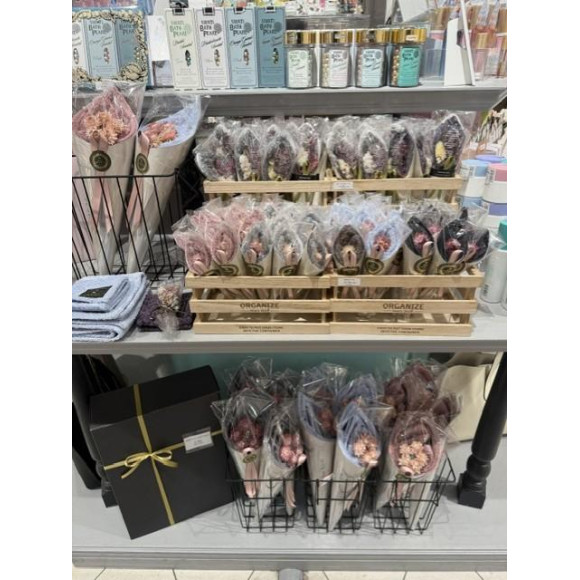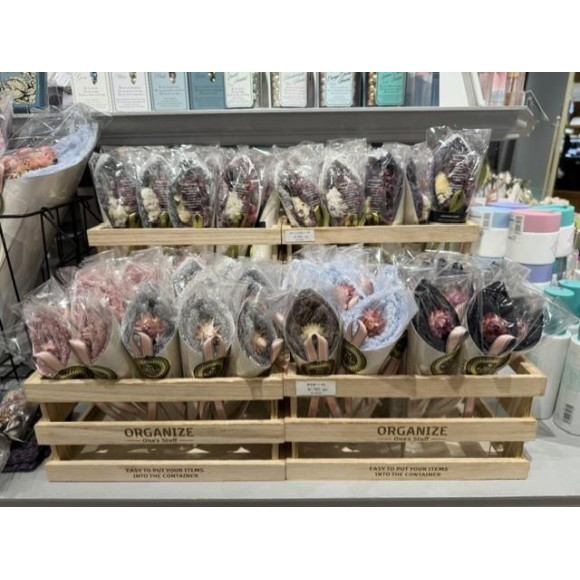 豊富なカラーバリエーションのタオルにプリザーブドフラワーを包んだ